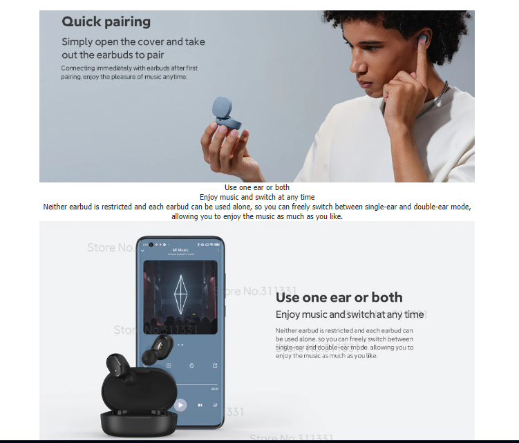 Specifications: Battery Capacity: 43 mAh(earbud);300 mAh(charging case)